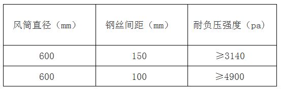 四、風筒耐負壓性能 風筒進行耐負壓試驗時,其值應符合下表: