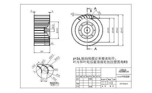 這種風機現(xiàn)有的制造方式,基本都是以鋼板焊接為主,其中,葉輪也有用鉚接的方式制作的;這里主要介紹鋼板制作的,同時探討有可能注塑的結構。